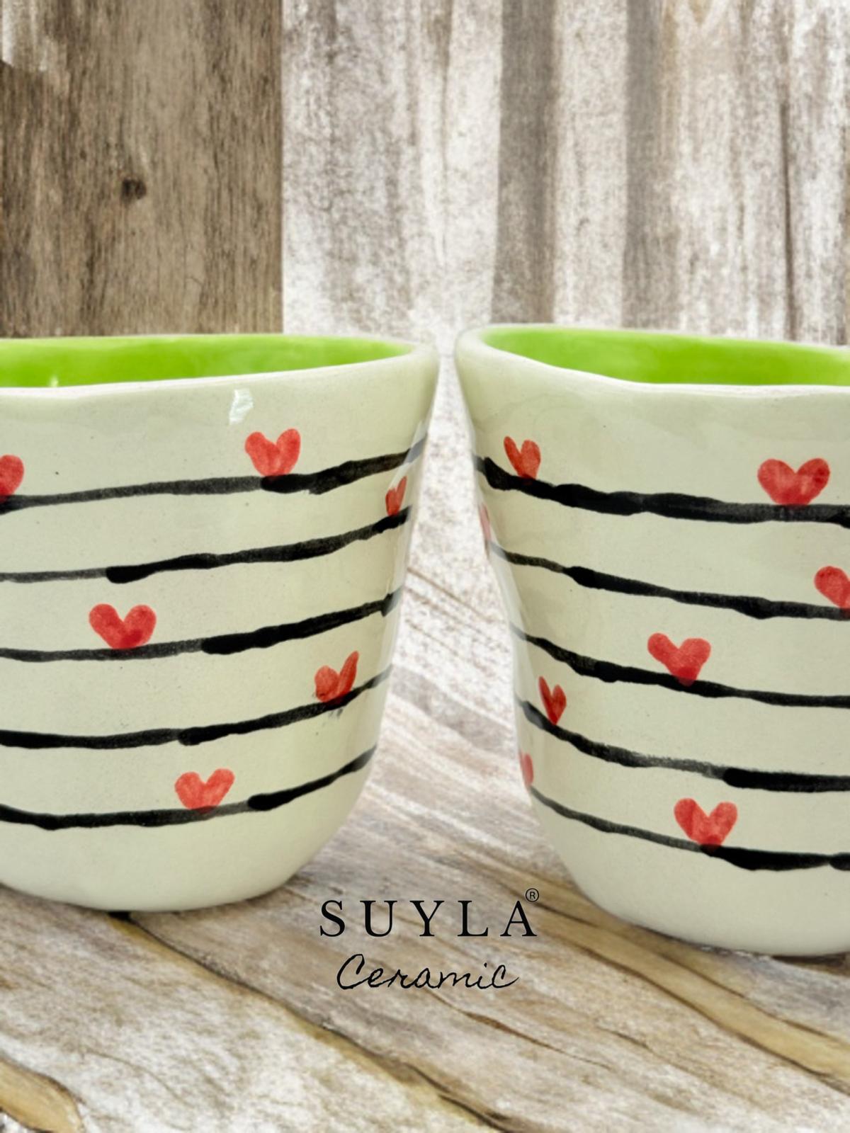 Her iki kupa da elde şekillendirilmiş olup, formu ve dokusuyla benzersizdir.