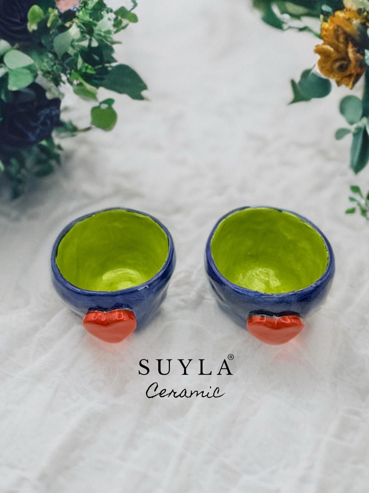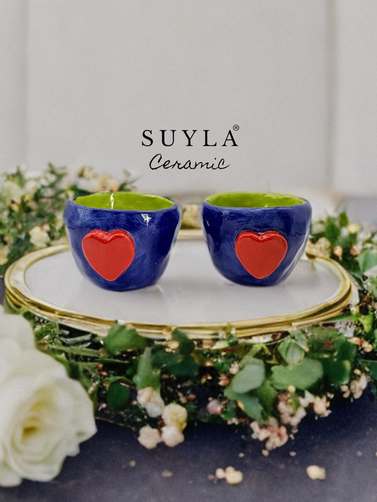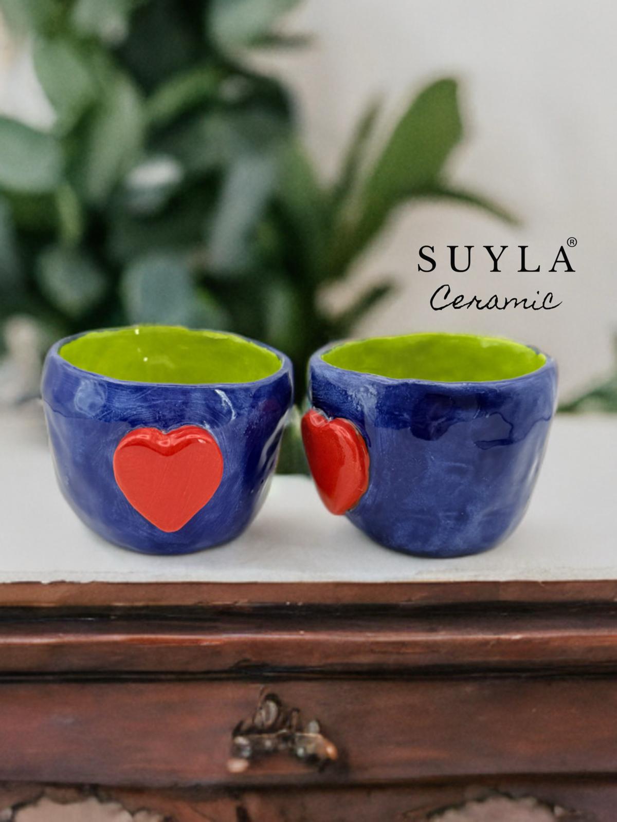 ROMANTIC El Yapımı 2’li Seramik Kulpsuz Espresso Fincanı