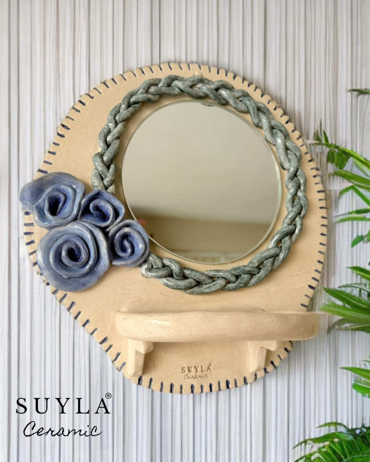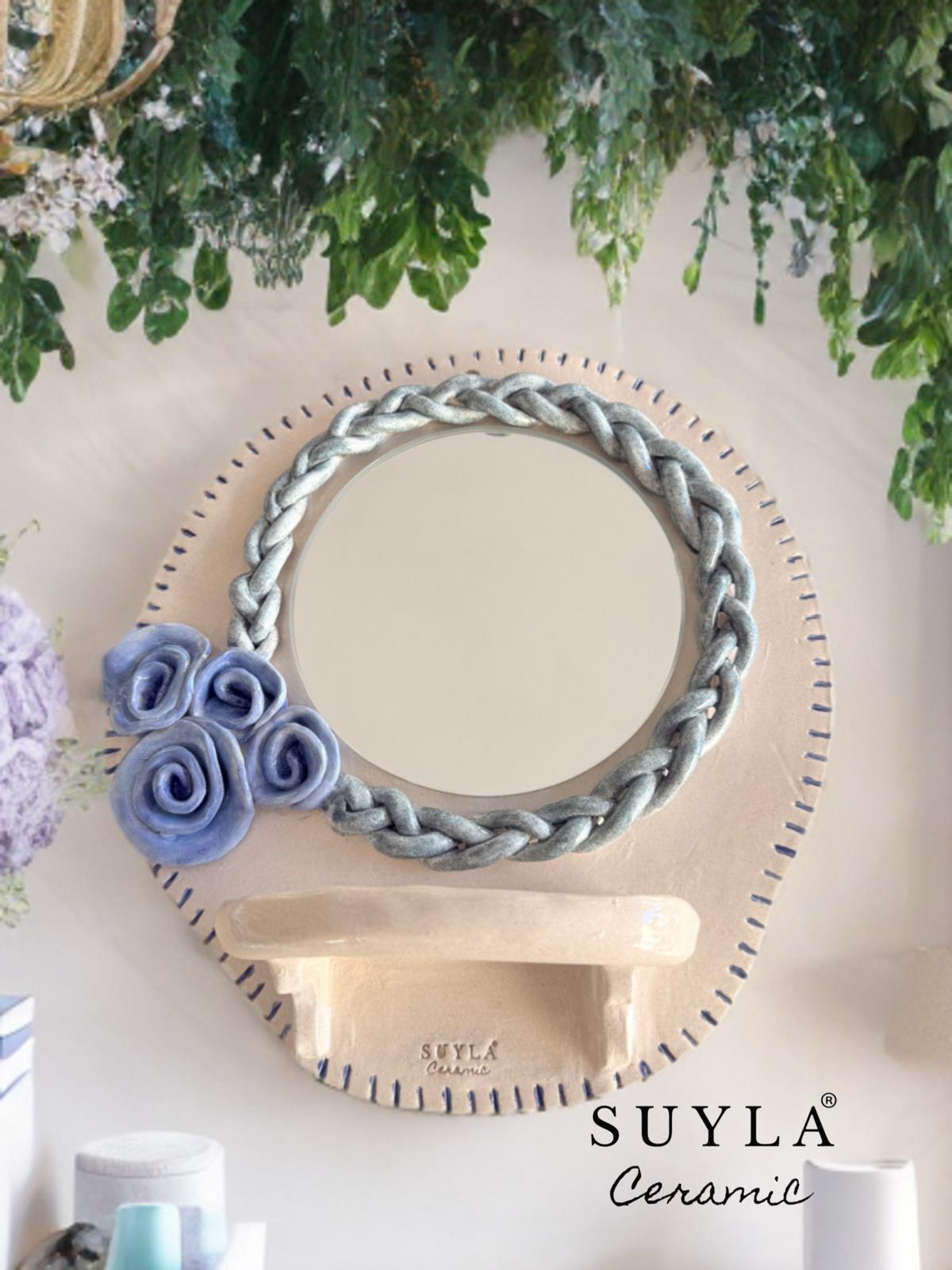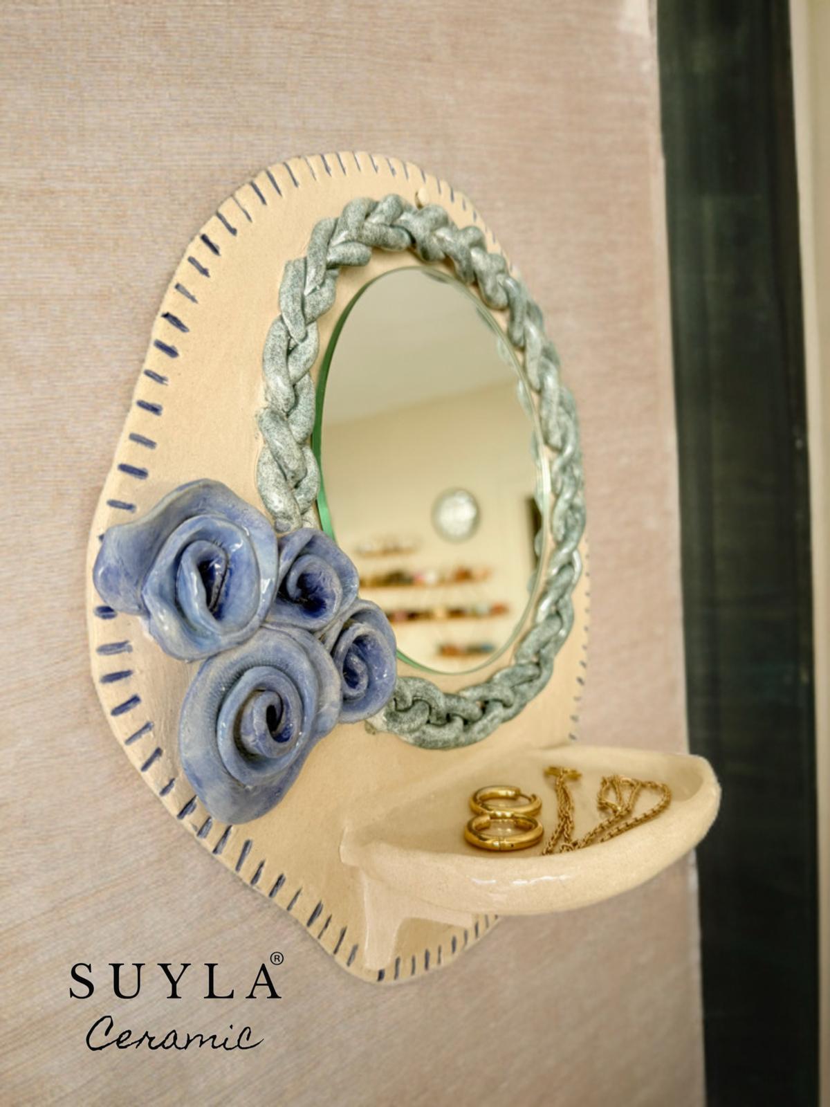Aynanın çapı 14,5 cm dir. Ürün ebatları 27 x 28 cm’dir.