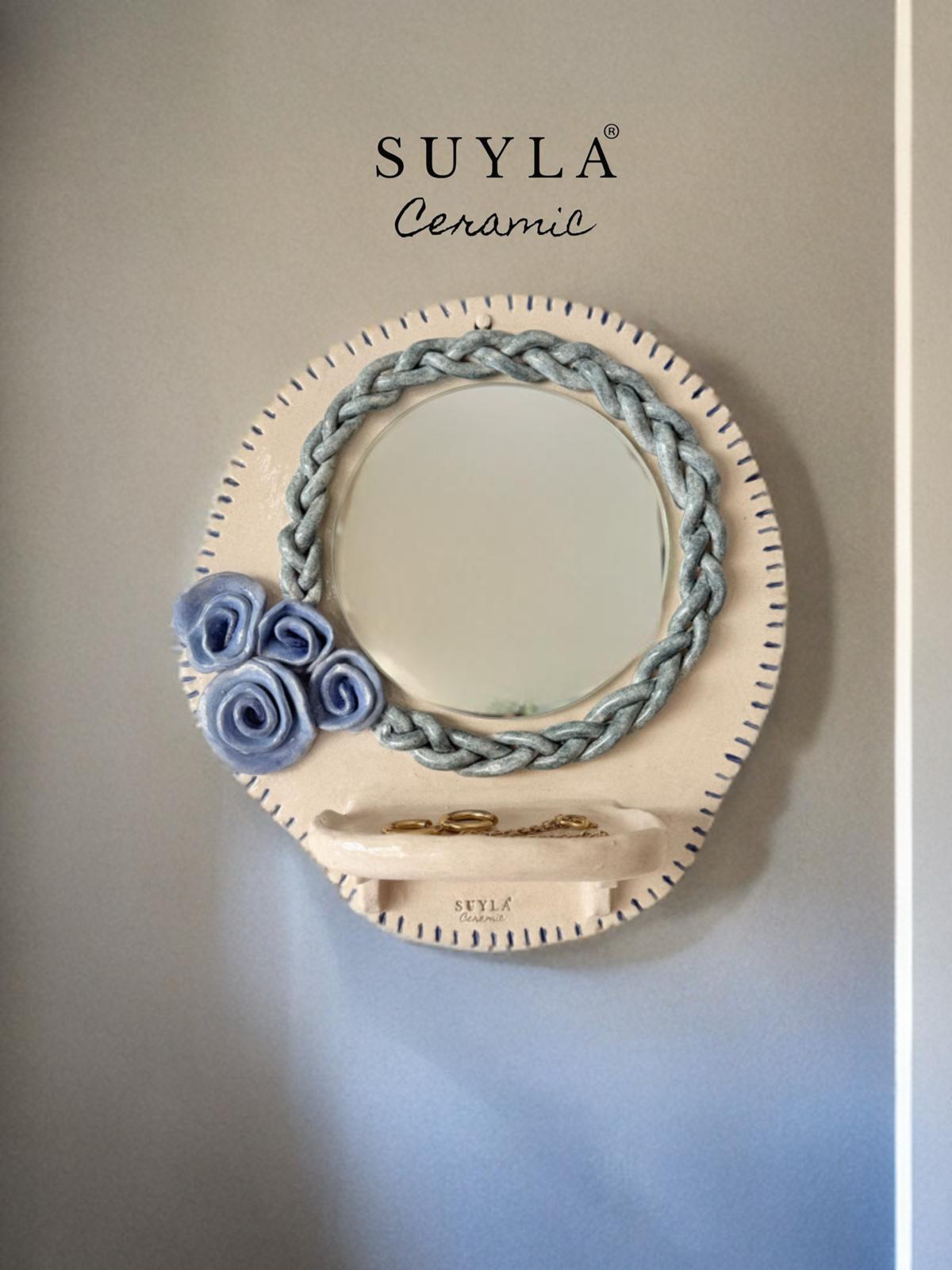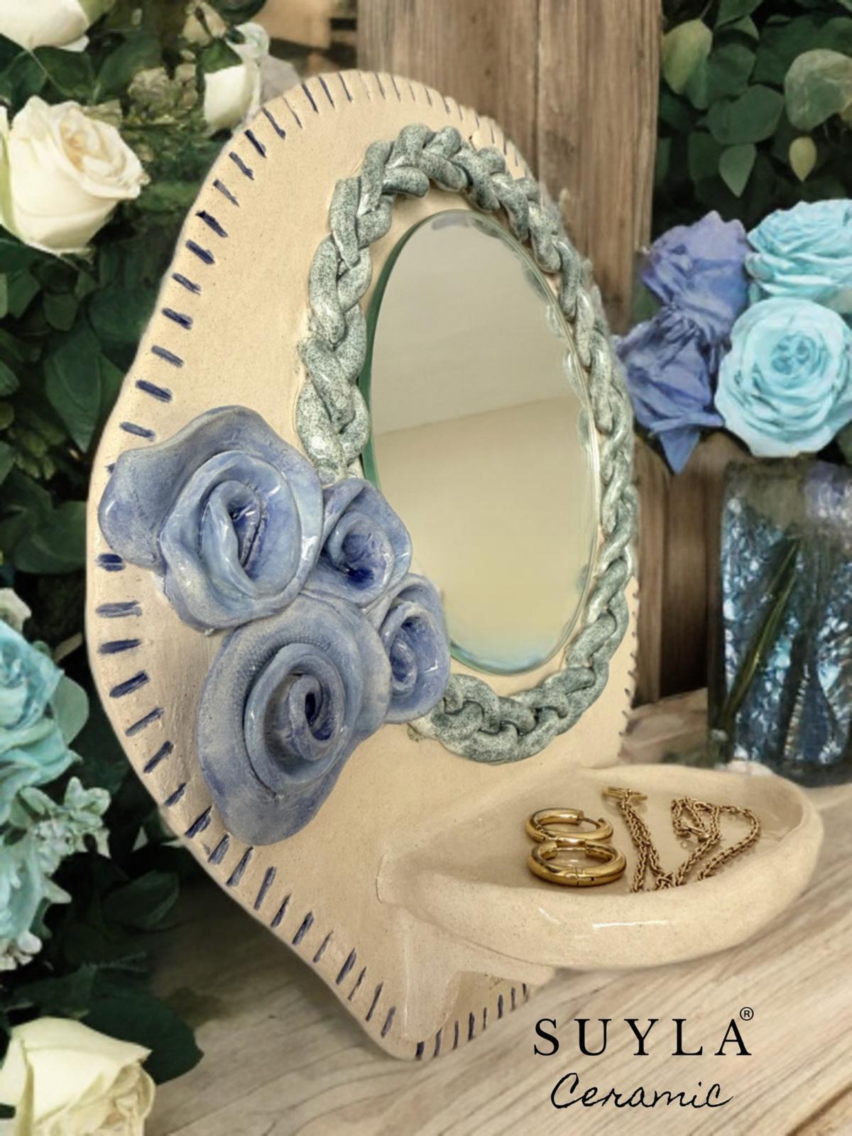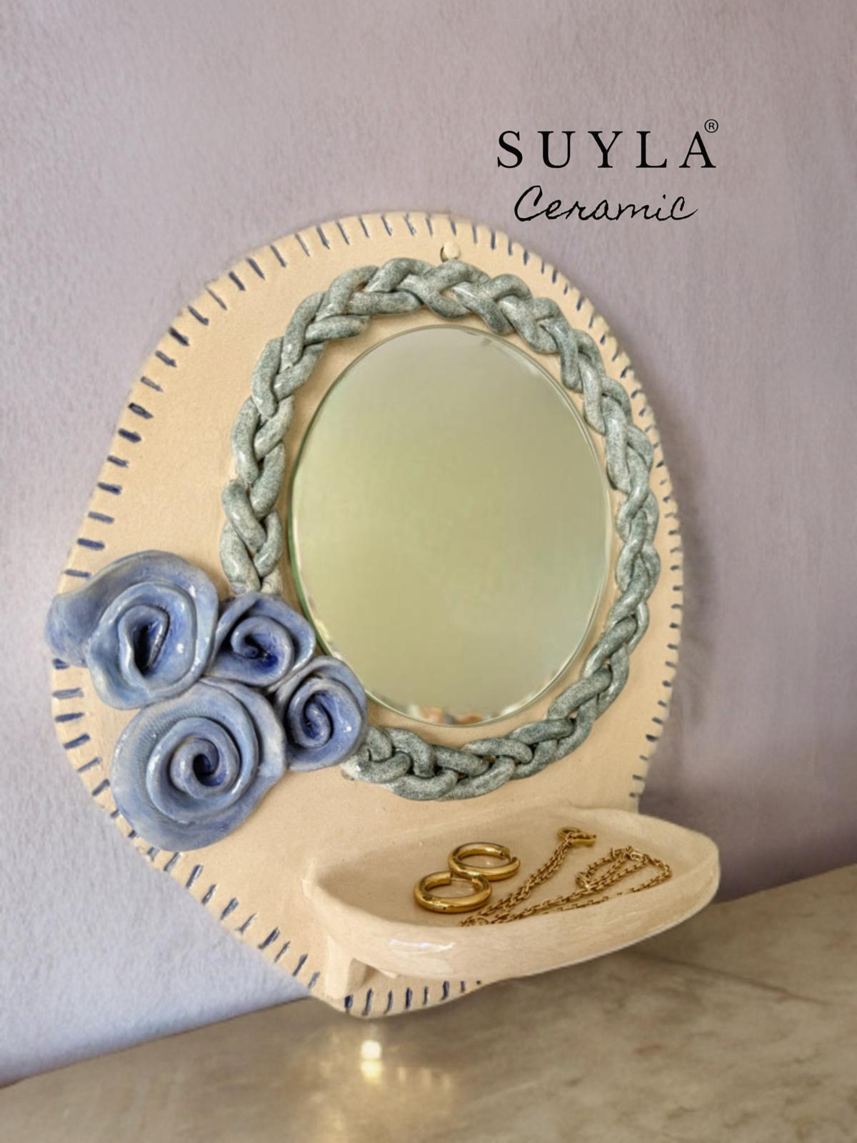 Aynanın çapı 14,5 cm dir. Ürün ebatları 27 x 28 cm’dir.